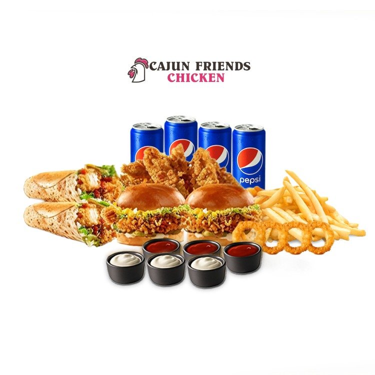 Cajun Friends Chicken, tavuk tutkunları için özenle hazırladığı geniş menüsüyle damaklara unutulmaz bir deneyim sunuyor. Her biri özel tariflerle hazırlanmış menülerimiz; taptaze malzemeler, özgün Cajun baharatları ve ustalıkla pişirme teknikleriyle birleşerek size sadece bir yemek değil, gerçek bir lezzet şöleni yaşatır.