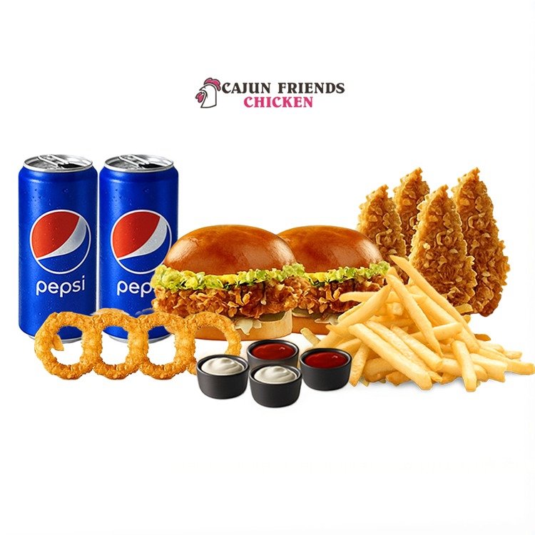Cajun Friends Chicken, tavuk tutkunları için özenle hazırladığı geniş menüsüyle damaklara unutulmaz bir deneyim sunuyor. Her biri özel tariflerle hazırlanmış menülerimiz; taptaze malzemeler, özgün Cajun baharatları ve ustalıkla pişirme teknikleriyle birleşerek size sadece bir yemek değil, gerçek bir lezzet şöleni yaşatır.